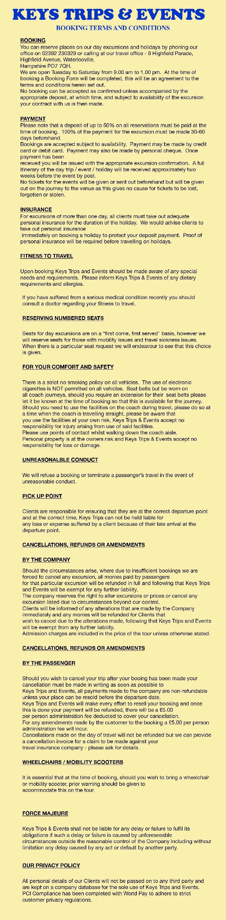 KEYS TRIPS & EVENTS - FULL DETAILS OF OUR TERMS AND CONDITIONS ARE AVAILABLE FROM OUR OFFICE - PLEASE ASK US FOR A COPY OF THESE